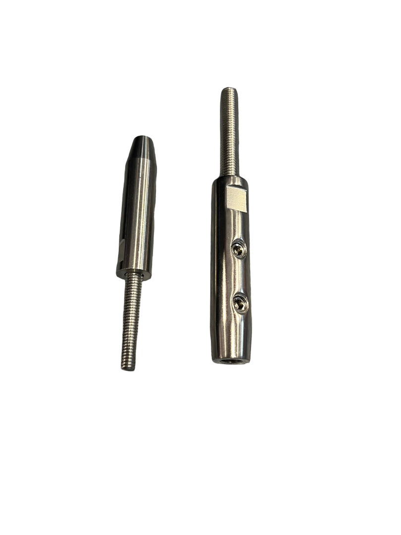 Τέρμιναλ με σπείρωμα Χειρός για 6mm ή 8mm συρματόσχοινο. Σπρείρωμα από την μία 6 ή 8mm. Σφίγγει με άλλεν.